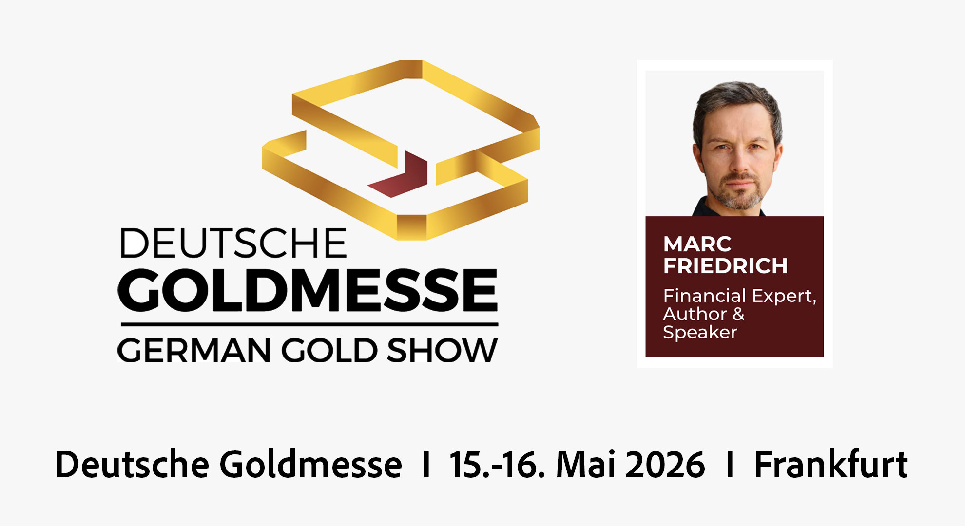 Die Deutsche Goldmesse ist Deutschlands führende Investmentkonferenz, die europäische Investoren mit Bergbauunternehmen verschiedenster Rohstoffbranchen und Entwicklungsstadien – von der Exploration bis zur Produktion – zusammenbringt. Erfahre von Marc, der hier neben anderen hochkarätigen Keynote-Speakern zu erleben ist, welchen Stellenwert Gold in der Zukunft hat.