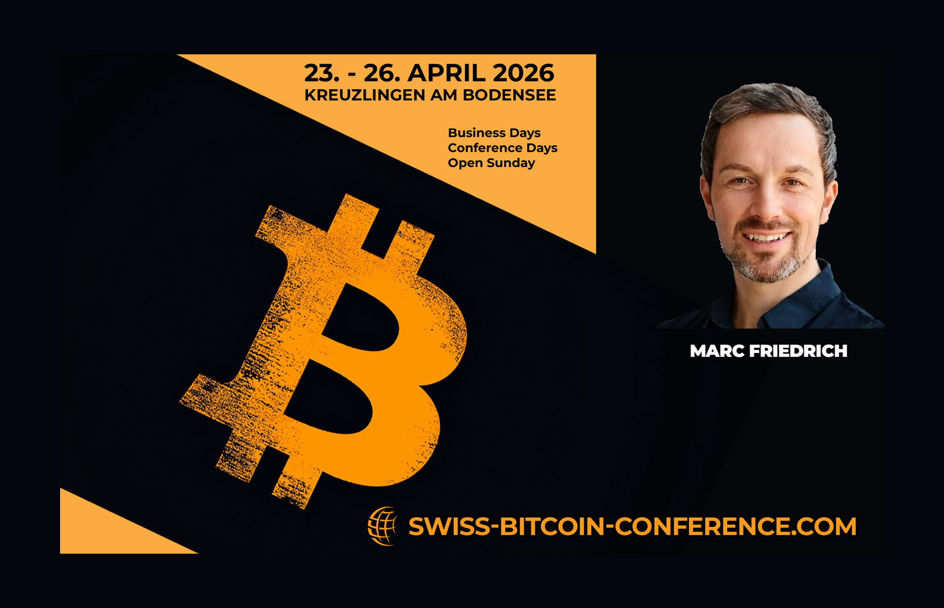 Auch in diesem Jahr ist Marc mit von der Partie, bei der 4. Edition der Swiss Bitcoin Conference. Er wird mit gewohnter Schärfe und tiefgreifender Expertise die aktuellen ökonomischen Entwicklungen und die Rolle von Bitcoin analysieren. Sei dabei, wenn er auf der Bühne steht und seine Vision für die Zukunft teilt!